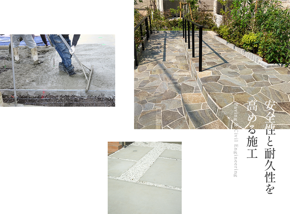 舗装工事・土木工事、造園や庭の手入れまで幅広く対応しています。