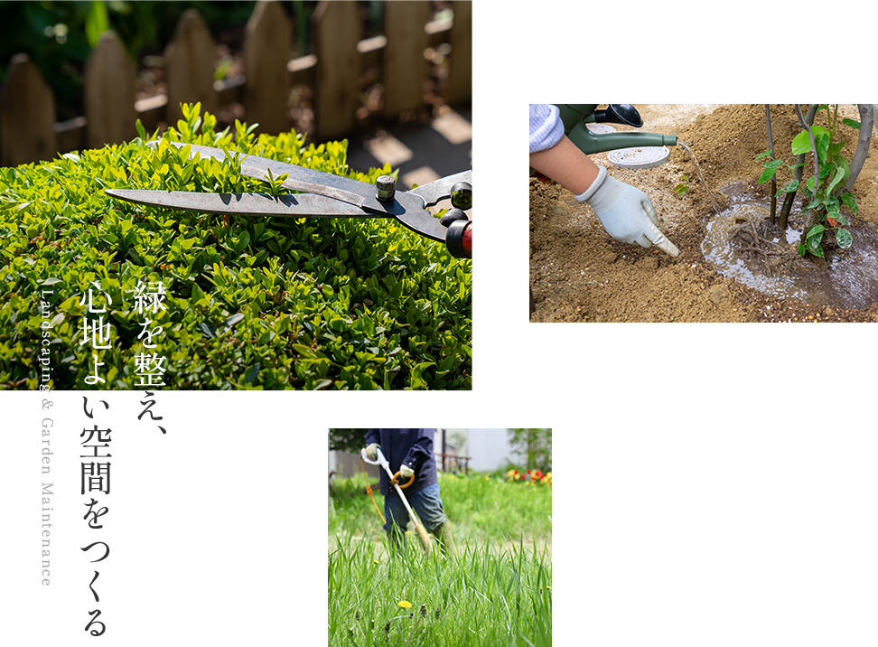 庭木の剪定、植栽、草刈り、造園など、緑に関するお手入れも承っています。